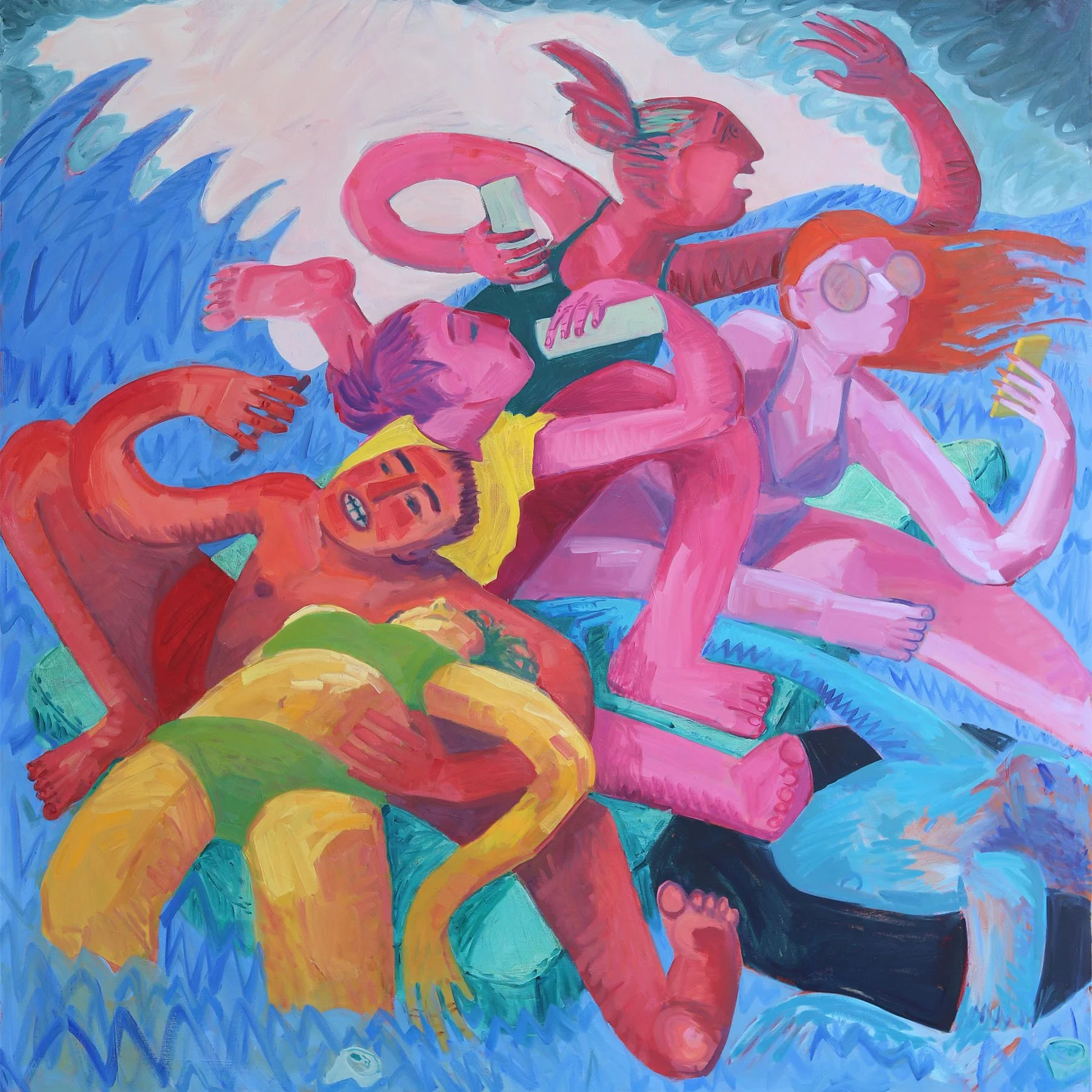 “In Never Land, Artist Colleen Terrell Comer examines the ways we cope with issues both intimate and outsized. It’s an exhibition on hope and futility, escape and reality, delusion and doom scrolling all wrapped up in humor and bright color.“