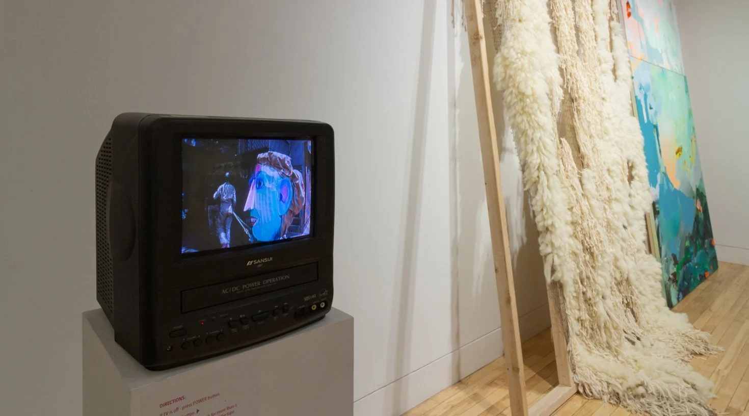 paper mache, flashé, acrylic, paper, wood, caster wheels, nylon rope, video